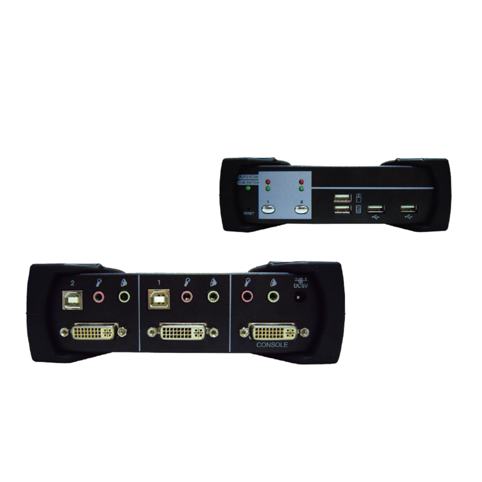 2埠DVI 桌上型KVM多電腦切換器(支援USB集線器/音訊) (KC-221UDA)