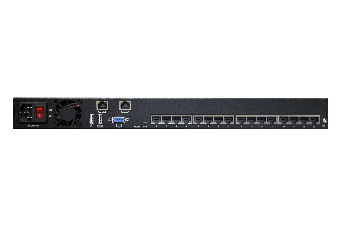 The device is a 16-port CATx Matrix KVM Switch with 3x consoles allowing both local and remote operators to access multiple computers. By using standard Category 5e/6 cables, the connection is made easier, more economic and supports up to effective distance 300m (1,000 ft) the remote console on user station, and PC away 50m (165 ft), over UTP CATx cable in point-to-point.